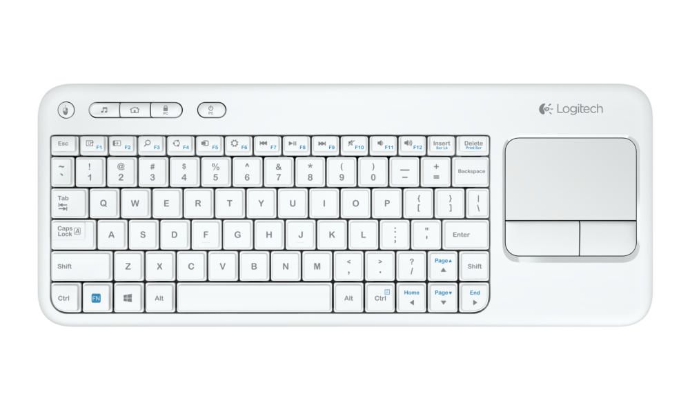 Biała klawiatura Wireless Touch Keyboard K400 White powstała, aby zaspokoić potrzeby sprzętowe najbardziej wymagających użytkowników i jednocześnie być ozdobą nowoczesnego wnętrza. Nowa klawiatura ma zasięg 10 metrów i umożliwia korzystanie z laptopa lub z telewizora, a wszystko z wygodnej pozycji salonowej kanapy. Wbudowany 9-centymetrowy panel dotykowy wbudowany w urządzenie swobodnie zastępuje popularną mysz komputerową.