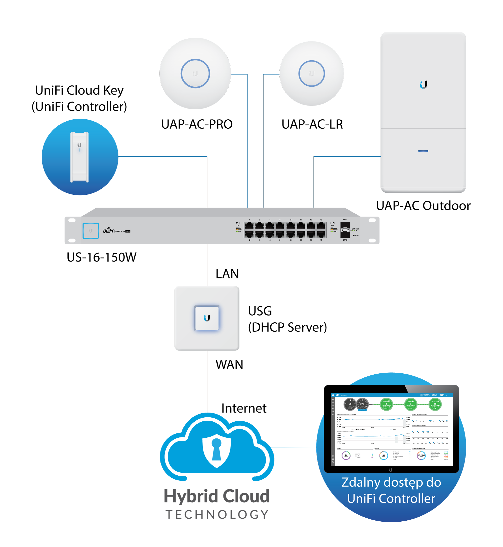 Smartfony, tablety czy laptopy są powszechnie używane w każdej, nawet najmniejszej firmie. Ich użytkownicy oczekują ciągłego dostępu do Wi-Fi. Dlatego niezwykle ważne jest odpowiedni wybór i rozmieszczenie punktów dostępowych. W grupie produktów Ubiquiti Networks na pierwszy plan wysuwa się linia zgodna ze standardem AC. Wszystkie modele obsługują technologię dual-band, co pozwala na wykorzystanie pasma 2,4 GHz lub szybszego i mniej zapchanego 5 Ghz. Duże ułatwienie stanowi bezpłatne oprogramowanie UniFi Controller zarządzające z jednego miejsca parametrami punktów dostępowych. Jego atutem jest też rozbudowany moduł do zarządzania uprawnieniami i wspomnianym wcześniej USG, co umożliwia np. uruchomienie w sieci kilku serwerów DHCP. Punkty dostępowe Ubiquiti Networks obsługują aktualnie przyjęte za normę sposoby autoryzacji użytkowników, takie jak WPA czy WPA2.