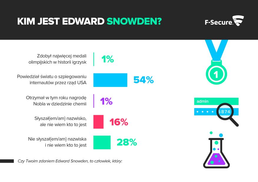 Na zlecenie firmy F-Secure, europejskiego dostawcy rozwiązań z zakresu cyberbezpieczeństwa, firma Smartscope przeprowadziła badanie sprawdzające znajomość postaci Edwarda Snowdena wśród Polaków i ocenę jego działalności.